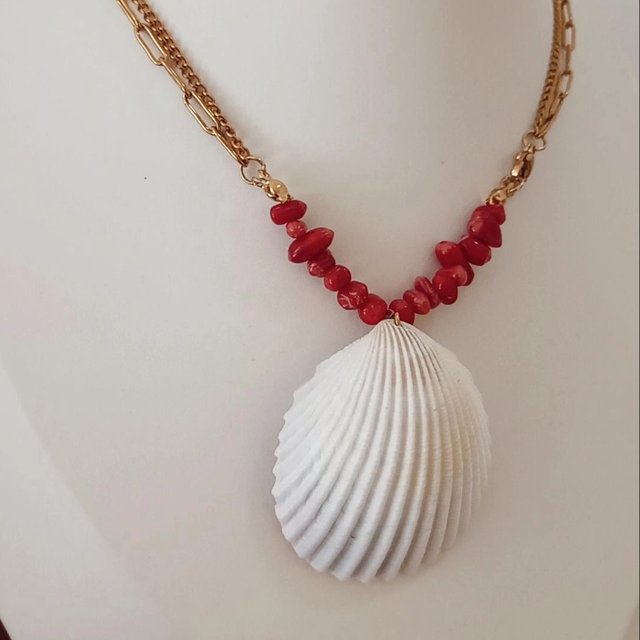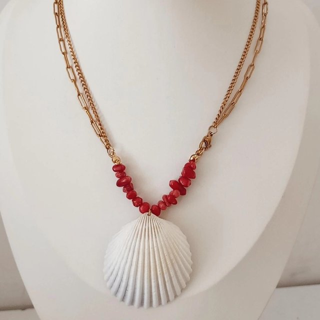 Cadena Doble de Acero inoxidable 316 L, Waterproof piedras naturales rojo, y y concha.
